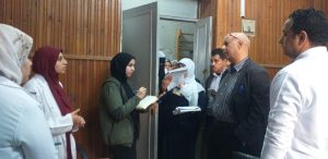 ثم تفقد مكاتب الإدارة بالدور الثانى وأمر مدير الشئون الإدارية بفحص سجلات الحضور والانصراف و إحالة المتغيبين بدون إذن الى التحقيق بالمديرية وتفقد الصيدلية وأمر بتحويل المتغيبين الى التحقيق بالمديرية