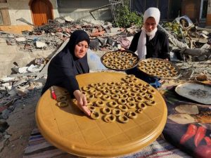 فلسطينيات يصنعن كعك العيد على أنقاض منازلهن المدمرة في خانيونس.. صدى نيوز