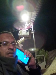 والاستاذ حمدي سعد سائق البرج للوحده المحليه بصيانه اعمده الاناره بالقريه وقد جنى العمل باناره اكثر من منطقه ومنها على سبيل المثال وليس الحصر منطقه السكه الحديد ومنطقه الشرطه العسكريه وعزبه ابو القاسم الطريق السريع طريق المطار مرورا بشارع المعهد الازهري الاعدادي الثانوي نهايه الى شارع مندرة الكر وجانب من سور شبكة مياه الشرب واخيرا شارع الوحده المحليه بدايه من الثانويه العامه نهايه الى مدرسه الشهيد محمد يوسف وتم بحمد الله وفضله صيانه وتركيب وجاري استكمال العمل باذن الله تعالى يوميا من بعد صلاه التراويح
