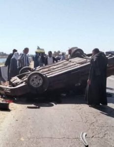 اثر تصادم ثلاث سيارات ملاكي على طريق منفلوط اسيوط الزراعي