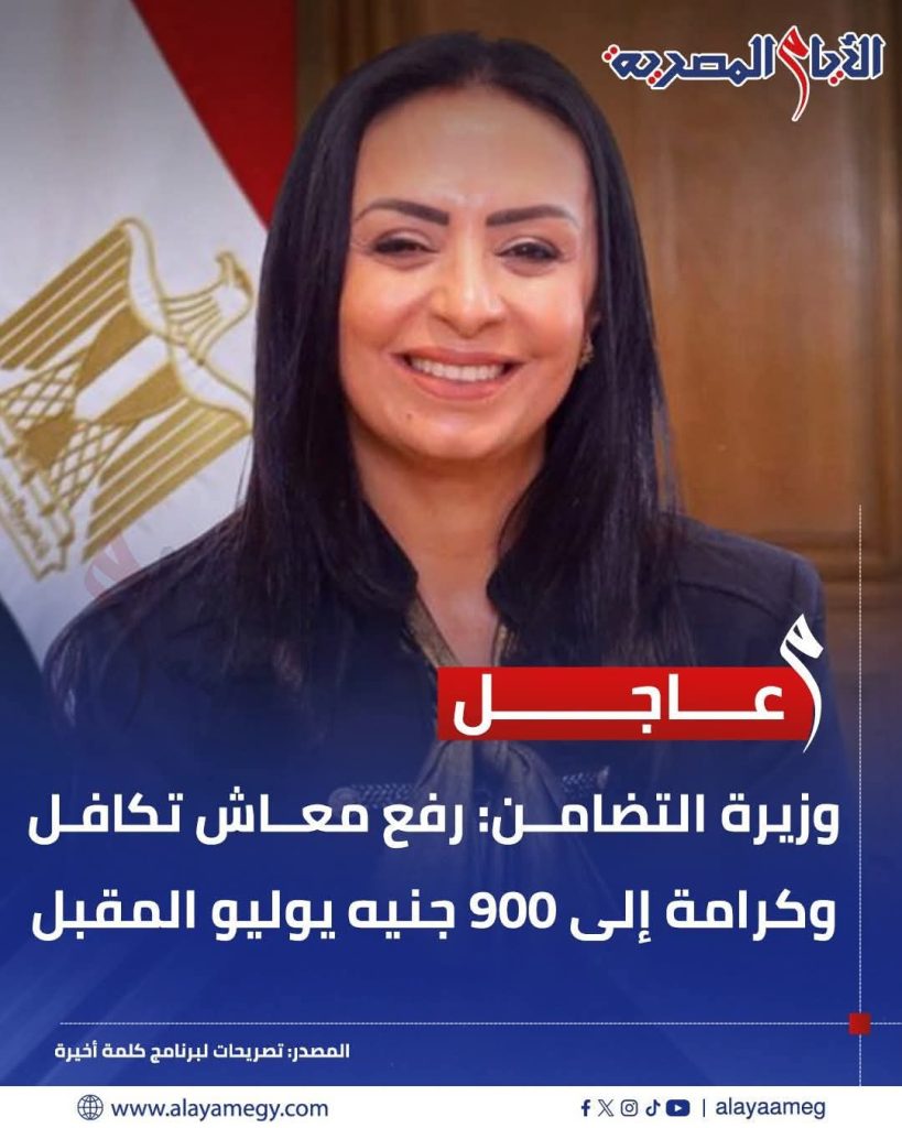 عاجل || وزيرة التضامن: رفع معاش تكافل وكرامة إلى 900 جنيه يوليو المقبل
