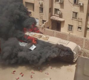 بسبب الحرارة حريق عدد من السيارات داخل جراج بجوار مدرسة لغات في حدائق الأهرام