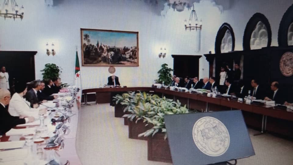 ترأس رئيس الجمهورية السيد عبد المجيد تبون القاىد الاعلى للقوات المسلحة ووزير الدفاع الوطني أمس الأحد اجتماعا لمجلس الوزراء تناول فيه مشاريع قوانين منها الحالة المدنية للطب البيطري وحماية الصحة الحيوانية وعروضا من بينها المخطط الوطني الخاص بالتوحيد وتعقب عرض السيد الوزير الاول لنشاط الحكومة في الاسبوعين الآخرين بالإضافة إلى مداخلات السادة الوزراء حول مشاريع القوانين المعروضه