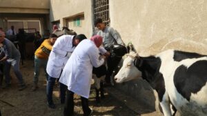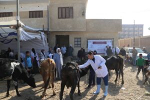 وتم تقديم الخدمات التشخيصية والعلاجية بالمجان من خلال فحص وتقديم العلاج اللازم لعدد ٢٨٣٣ حالة من الماشية والأغنام والدواجن حيث تم توقيع الكشف البيطري وصرف العلاج لعدد ٨٦١ حالة باطنة ١٧٥ أبقار ٤٣ جاموس ٦٤٣ أغنام و٩٨ حالة تناسليات ٦٥ أبقار ٣٣ جاموس و٨٢١ حالة تجريع و١٠٥٣ دواجن وذلك بالإضافة إلى تقديم الإرشادات والتوعية الصحية للمربين حول سبل الرعاية السليمة والوقاية من الأمراض الحيوانية الشائعة