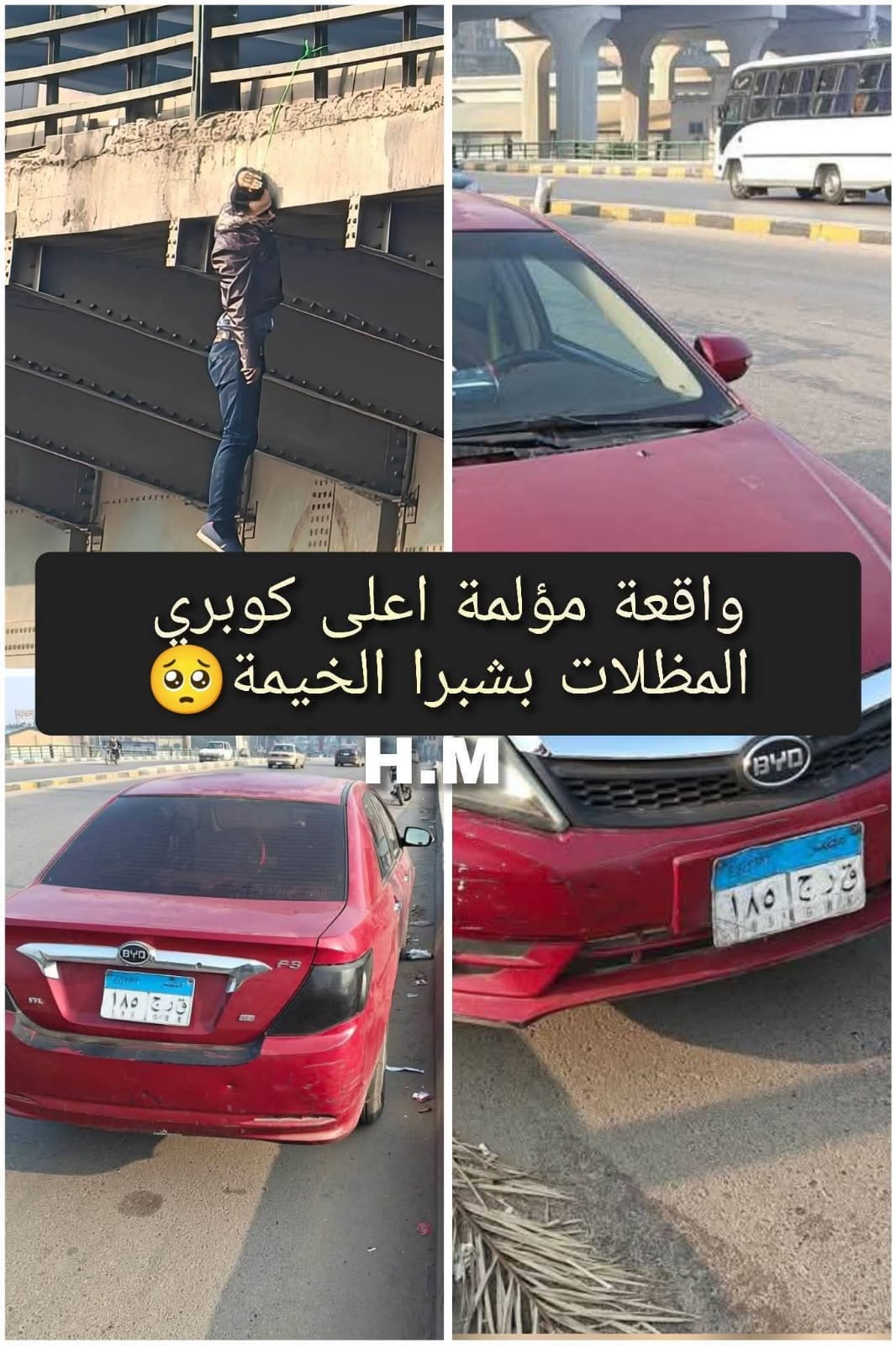 أنهى شاب حياته بعدما ربط نفسة بحبل وثبّته بسور كوبري المظلات في نطاق محافظة القليوبية والقى بجسده في الهواء دائرة قسم أول شبرا الخيمة .