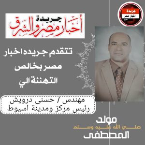 معالي وكيل الوزارة المهندس حسنى درويش رئيس مركز ومدينة اسيوط بخالص التهاني لسيادته ولجميع الأسرة الكريمة بخالص التهاني بمناسبة ذكرى مولد المصطفى صل الله عليه وسلم