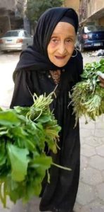 الحاجة عزيزة عندها ٨٩ عاماً؛ولسه شغالة على دراعها لكسب رزقها وقوتها اليومى رغم تقدم عمرها من خلال بيع الجرجير وبعض الخضروات.